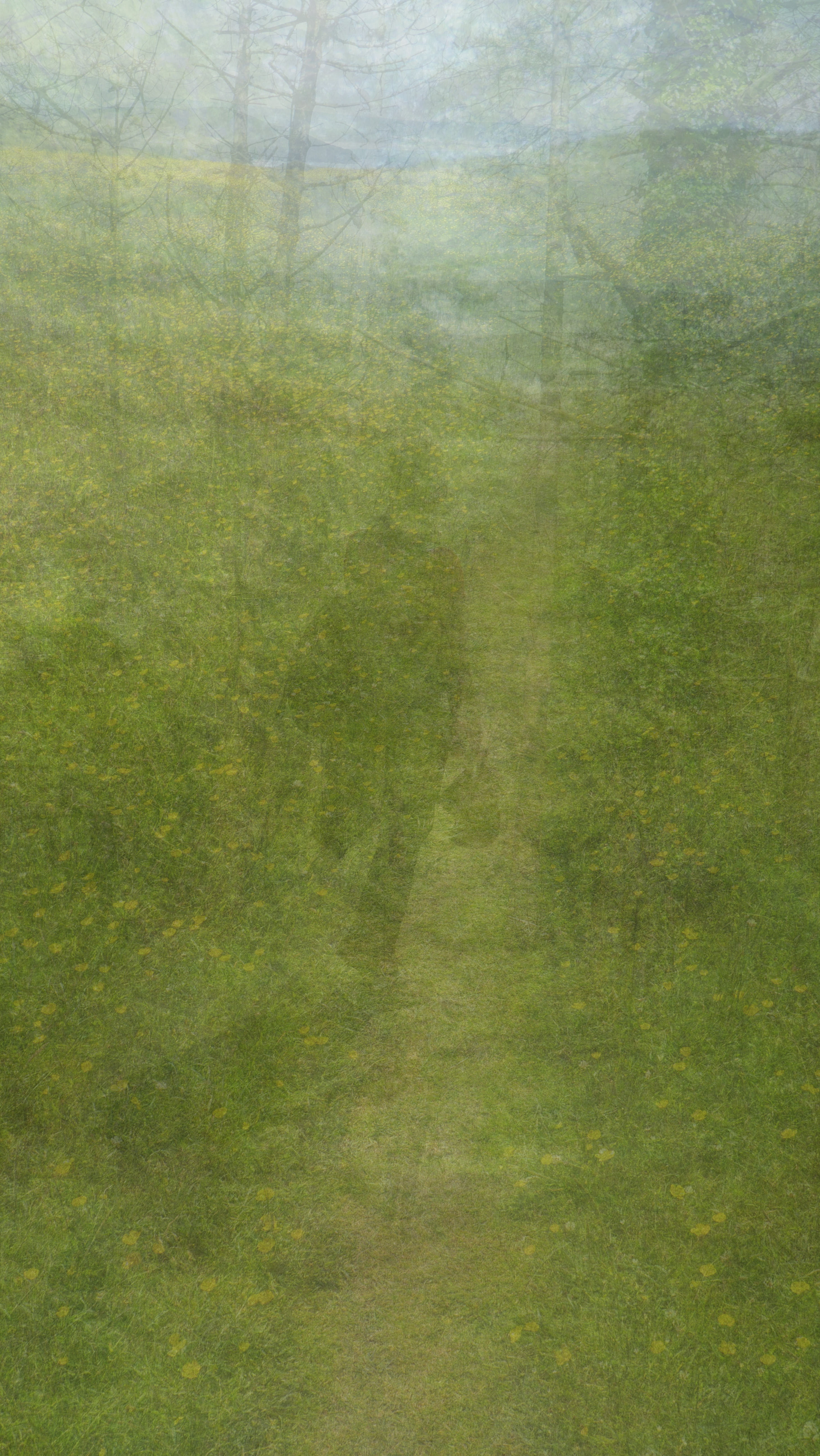 Durch die Verschmelzung aller hochkantigen Fotos von Spaziergängen im Irlandurlaub aus dem Juni 2024, in denen der Weg sichtar ist, wird das was Irland ausmacht konzentriert dargestellt: das Grün der Insel.
