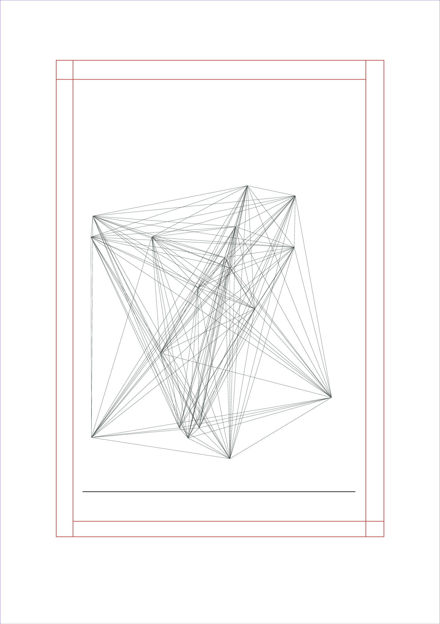 Alle im Einzelwerk vorkommenden Buchstaben werden mit allen Buchstaben, die nicht in derselben Textzeile vorkommen, verbunden. Die Verbindung mit einem Pfad mit einer Kontur von 0,1 pt und einem Runden Ausgangspunkt.