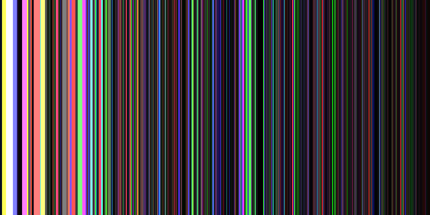 Für das Vordergrundfarben-Derivat wurden für die 521 Farbwerte der Schrift bzw. Abdeckung die Textzeilen in Twelfth Night verwendet. (Akt, Szene, Sprecher, Text, Szenenanweisung).
