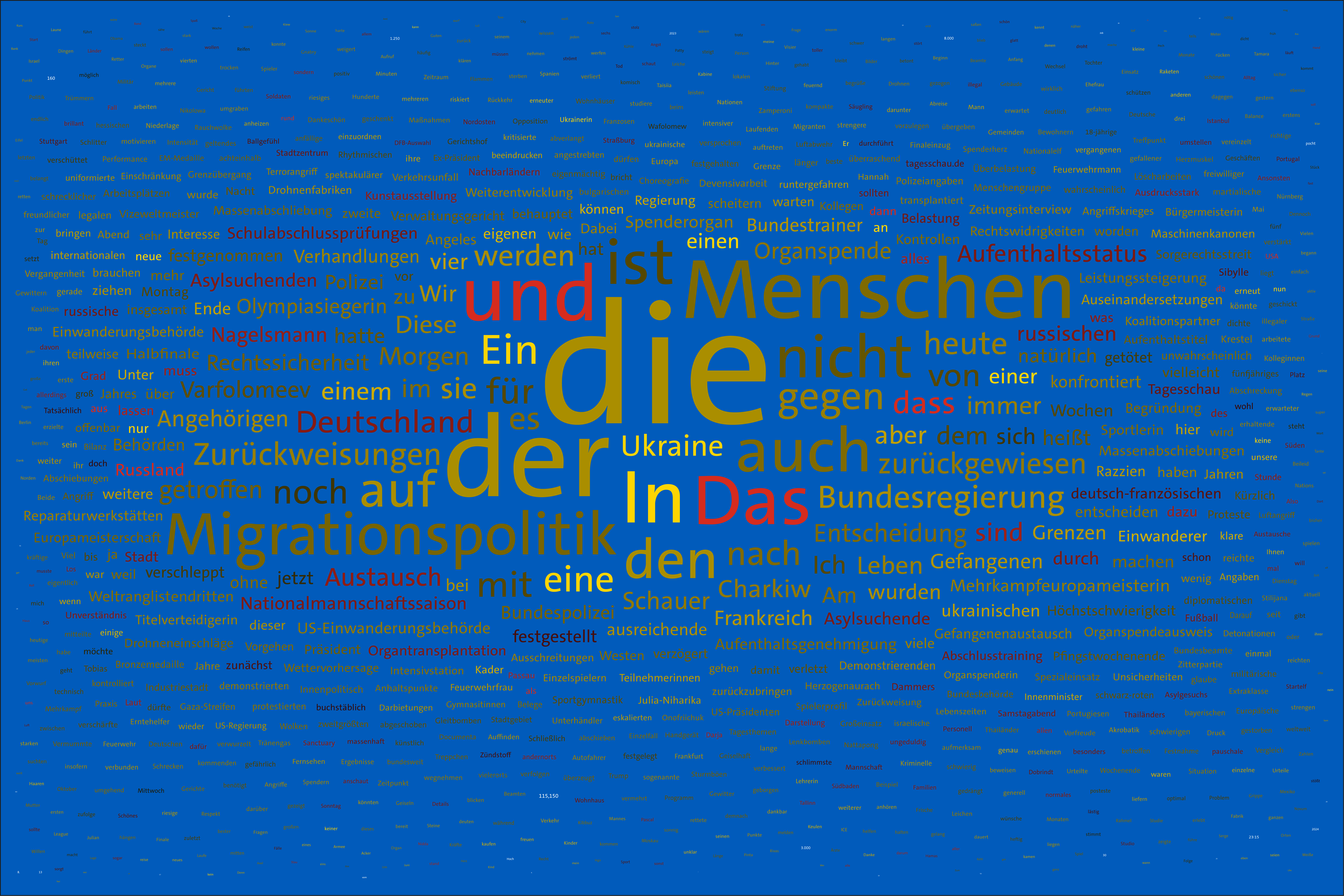 Die Buchstabengröße richtet sich nach der Gesamtlänge der Buchstaben in der jeweiligen Ausgabe der Tagesschau für das Vorkommen des ausgewerteten Wortes.