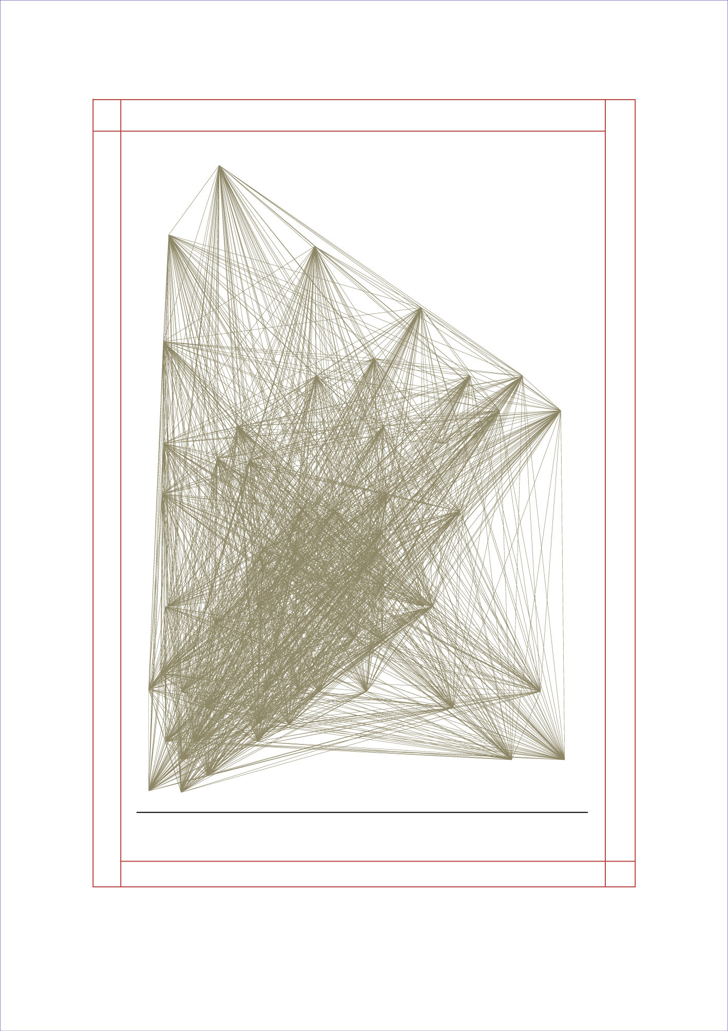 Alle im Einzelwerk vorkommenden Buchstaben werden mit allen Buchstaben, die nicht in derselben Textzeile vorkommen, verbunden. Die Verbindung mit einem Pfad mit einer Kontur von 0,1 pt und einem Runden Ausgangspunkt.