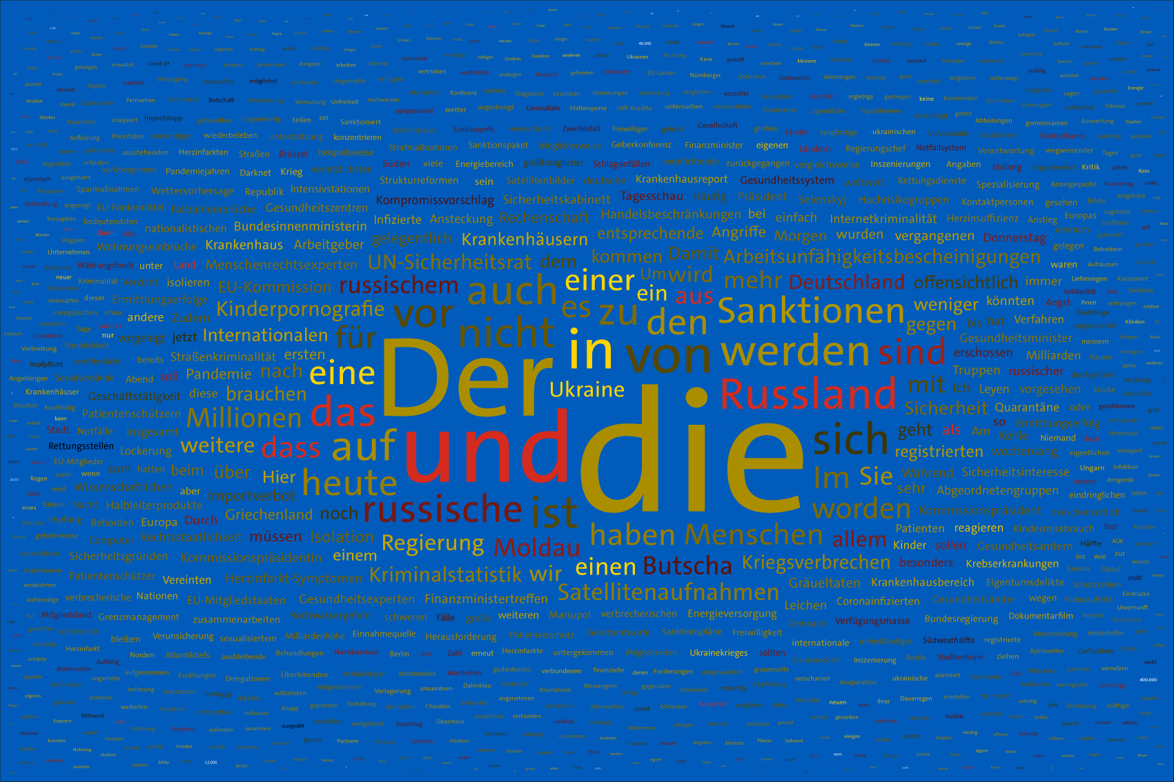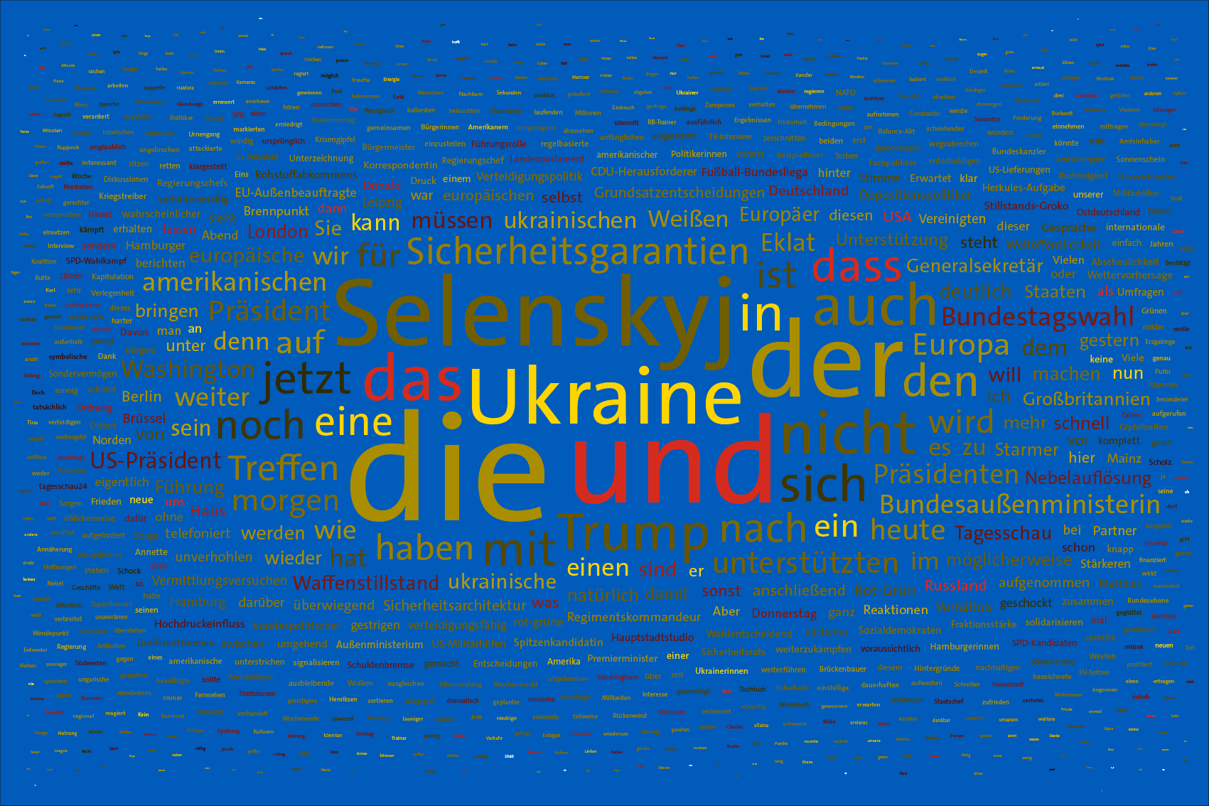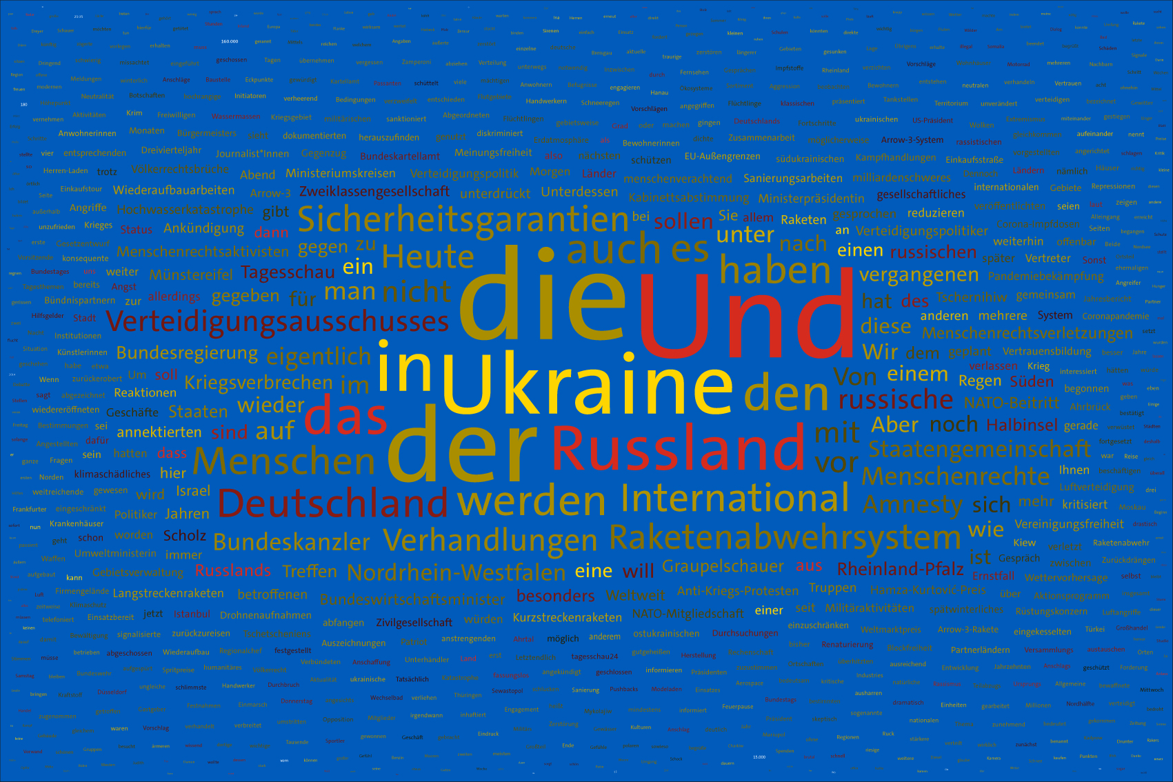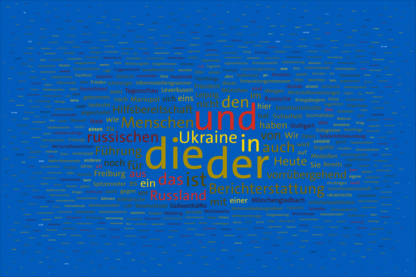 If the word "Ukraine" does not feature in the entire Tagesschau, the word Ukraine is inserted in the size of the first day of the war, the 24th February 2022, but faded out after the grouping of the entire text.