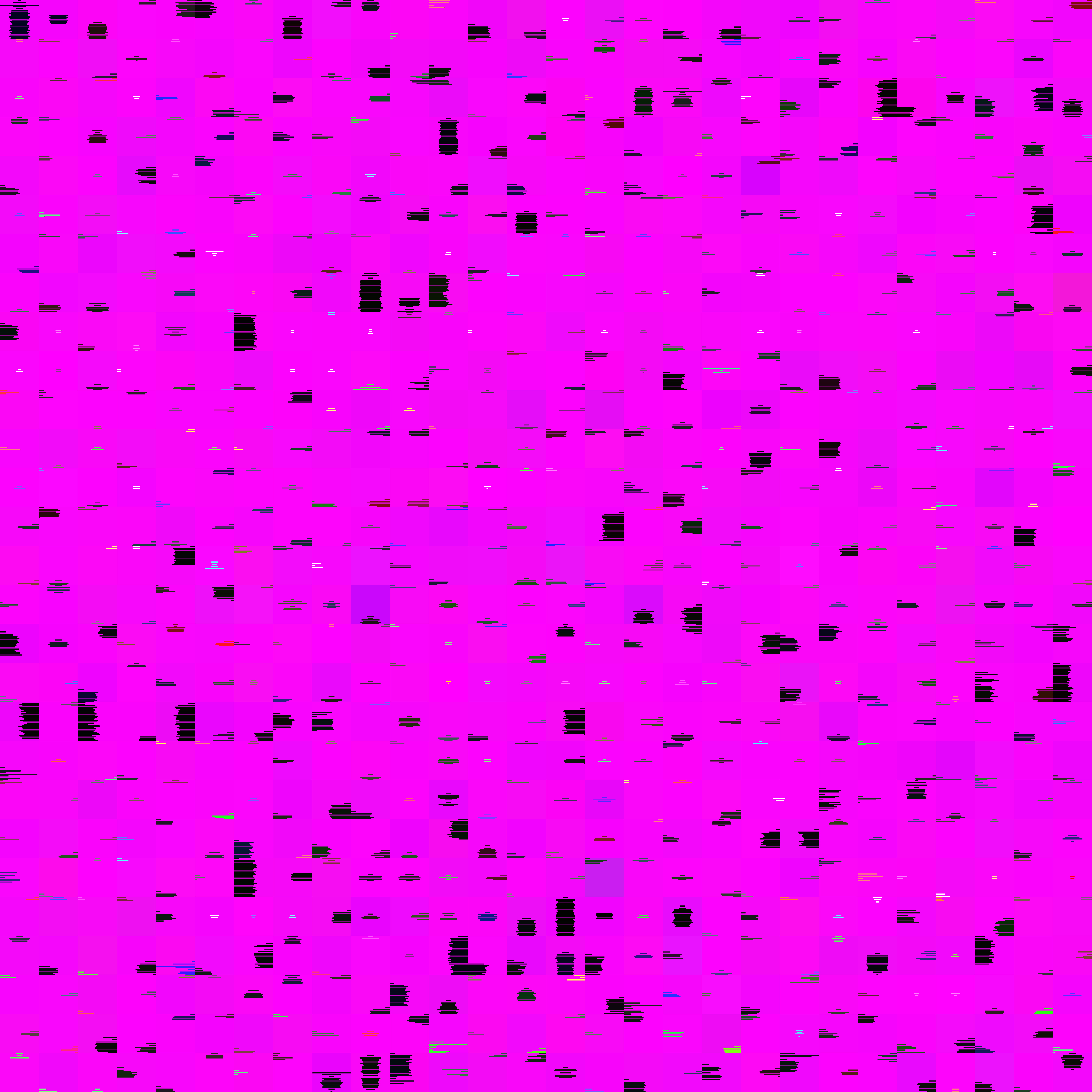 Bestehend aus 784 Kacheln in der Grundfarbe Magenta mit einer Seitenlänge von 10 cm ist das Werk in der Grunddatei ein Quadrat von 280 * 280 cm. Das Werk ist für den Druck in den Maßen 140 * 140 cm vorgesehen.