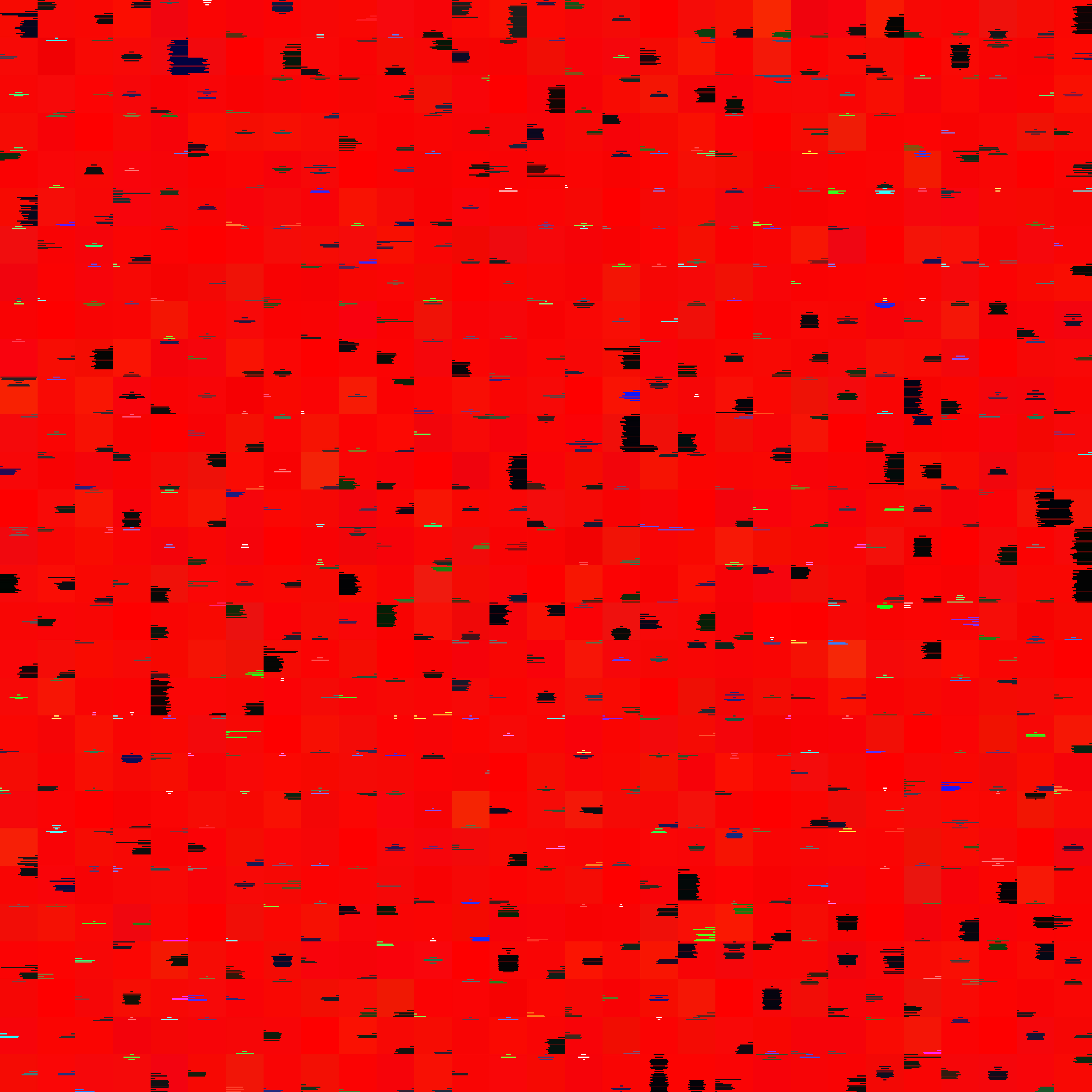 The number of tiles of the work is determined (due to the defined quadratic work) by the root of the text blocks rounded up to an integer. The result is 29 x 29 = 841 tiles. The resulting 45 tiles not occupied by text are created with the basic colour of the work 255-0-0 and inserted evenly at every 18th position from the 18th tile onwards.