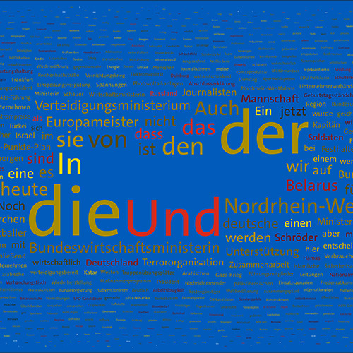 Die Gesamtlänge aller Vorkommen des Wortes an den Zeichen des Gesamttextes bestimmt die Schriftgröße des Wortes im Bild. Die verwendete Formel für die Punktgröße ist