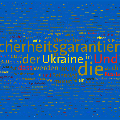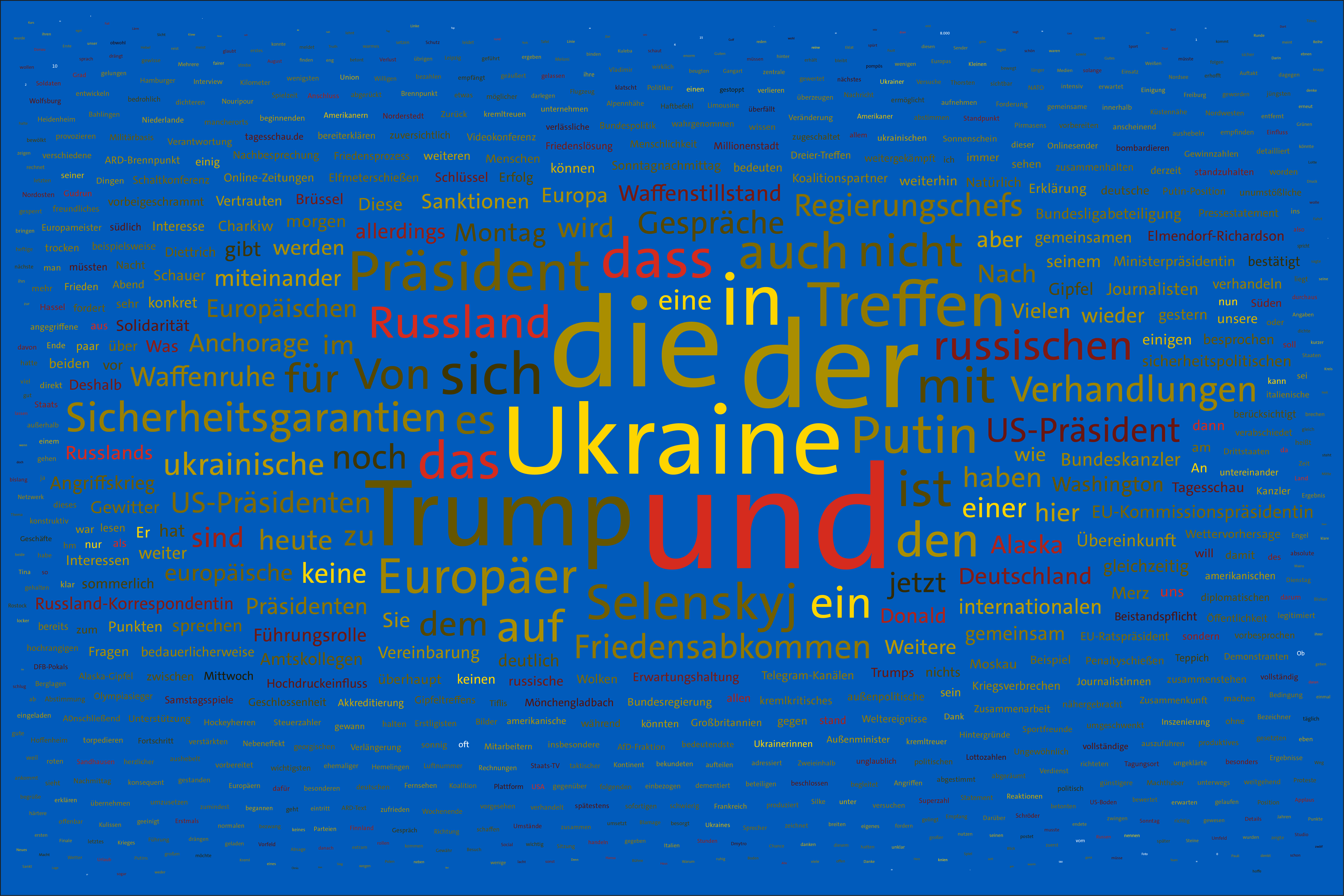 If the word "Ukraine" does not feature in the entire Tagesschau, the word Ukraine is inserted in the size of the first day of the war, the 24th February 2022, but faded out after the grouping of the entire text.