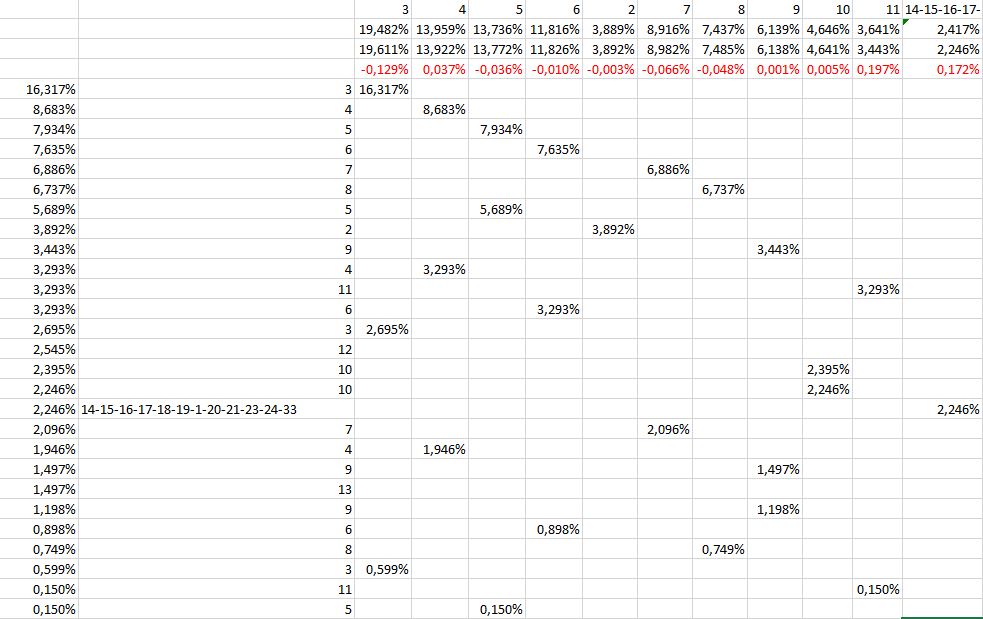 Die Länge der Worte umfasst laut Definition Worte mit 1, 2, 3, 4, 5, 6, 7, 8, 9, 10, 11, 12, 13, 14 ,15, 16, 17, 18, 19, 20 ,21, 23, 24, 33 Zeichen.