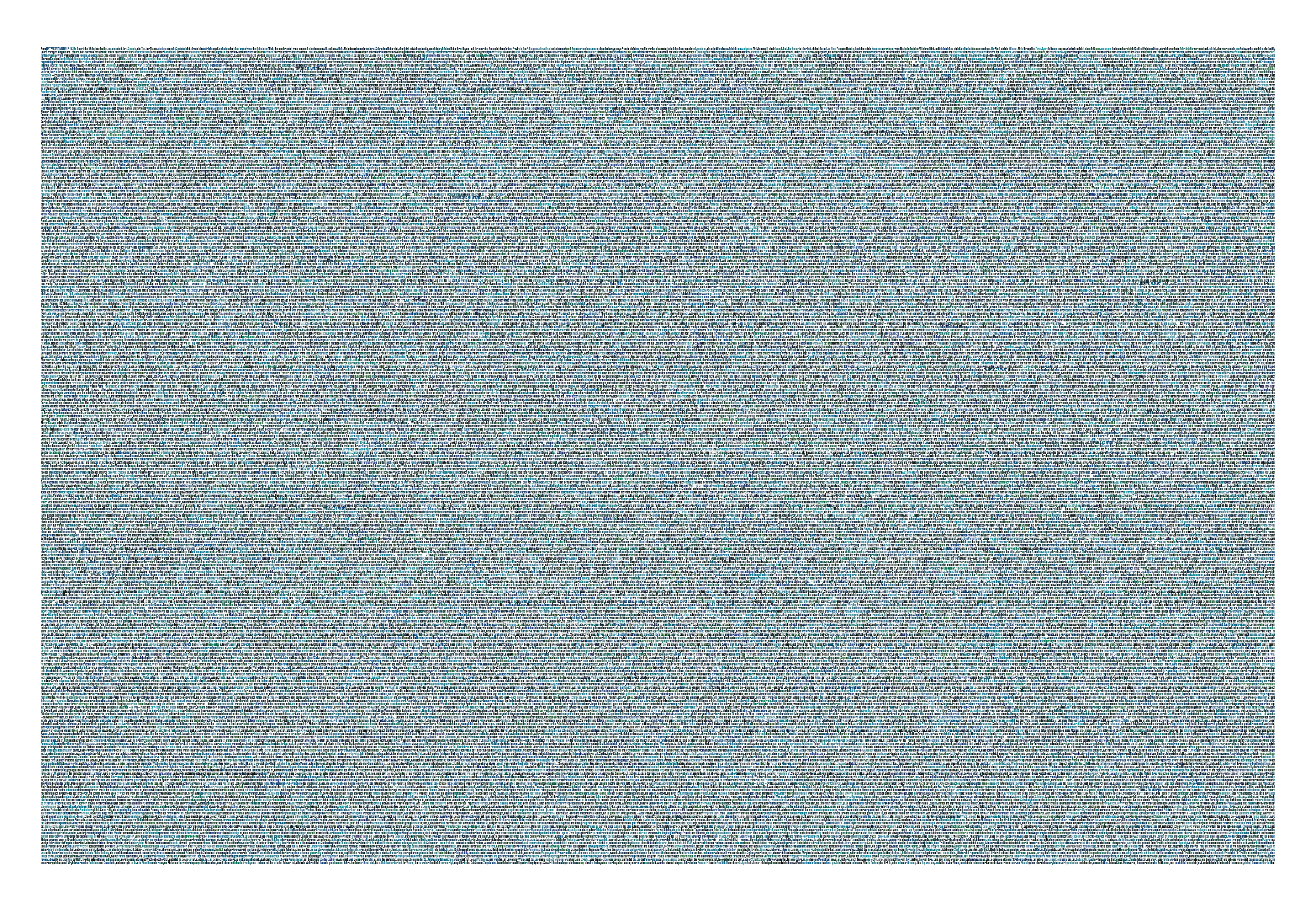 Zur Überprüfung, ob die verwendete Formel eine näherungsweise korrekte Flächenverteilung der einzelnen Farbwerte auf den Text ermöglicht, wurde zur Kontrolle der Quotient aus einzelnem Farbwert und Zeichenlänge des Einzelwortes gebildet. Über alle Farbwerte liegt er zwischen 347 und 392 Zeichen, was dem Künstler genau genug ist.
